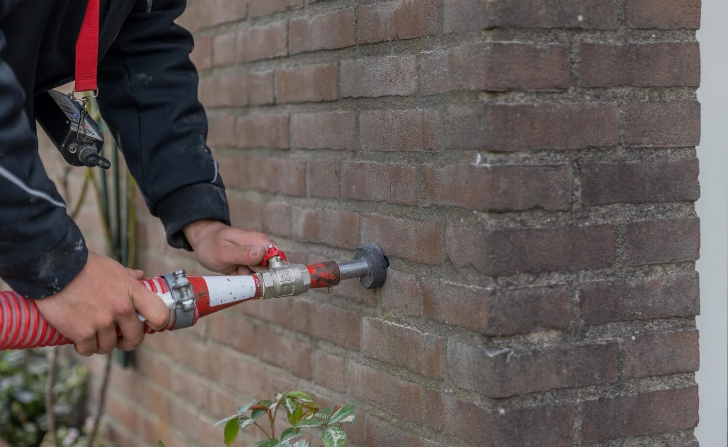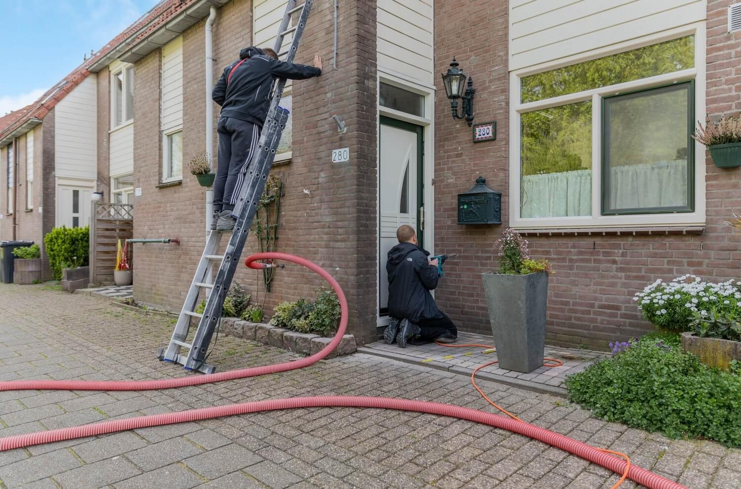 Uitvoering van +/- 40 vierkante meter spouwmuur isolatie